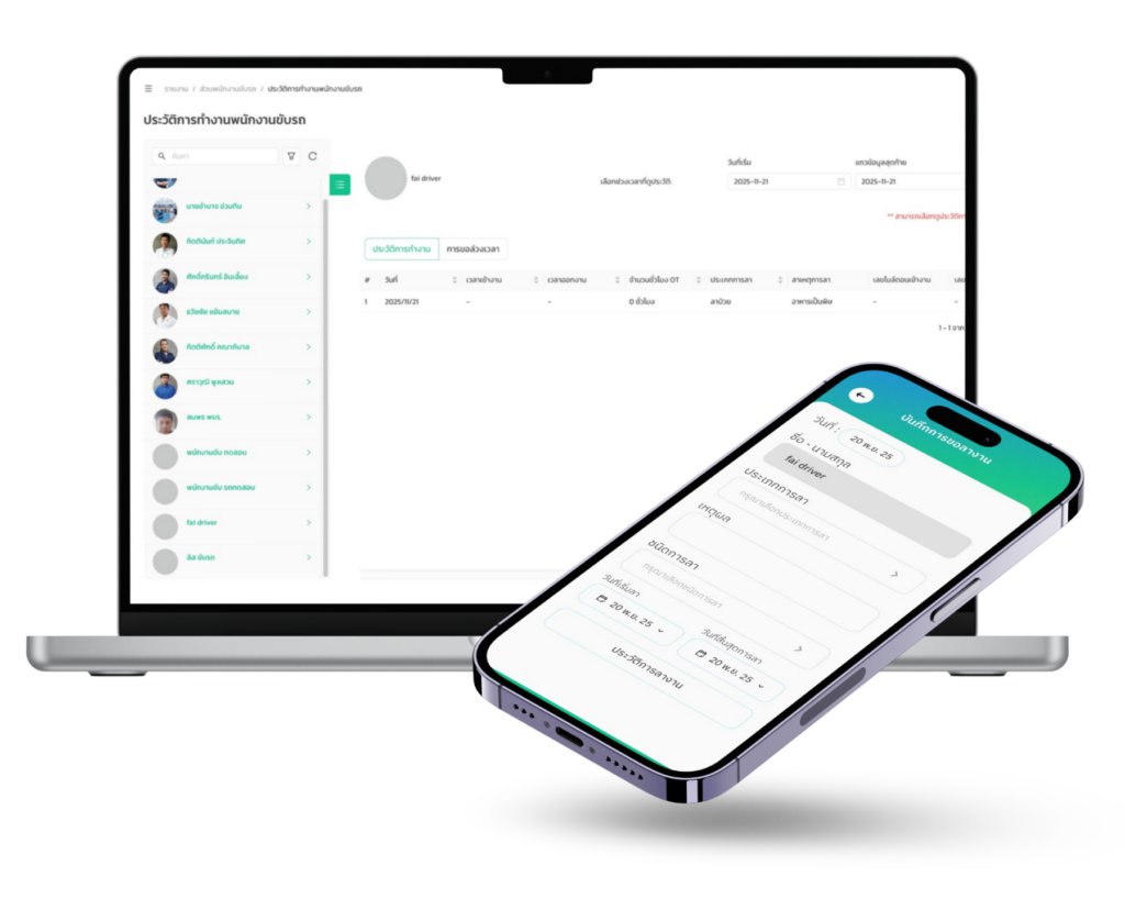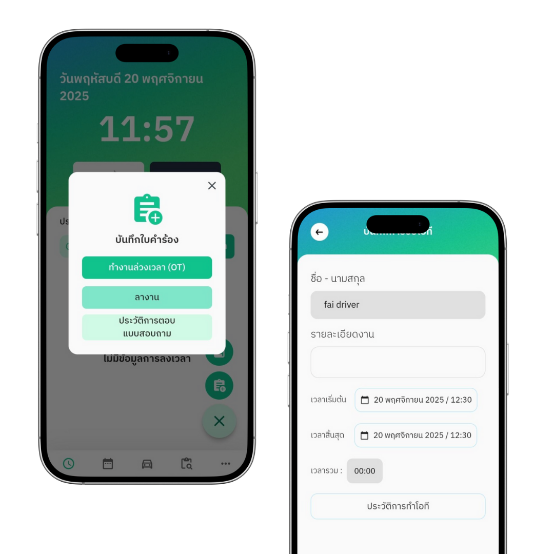 เพิ่มความยืดหยุ่นในการทำงานของ Driver ด้วยการลงเวลาเข้า ออกงานผ่านระบบ ซึ่งจะสามารถทราบถึงสถานที่ รายละเอียดเวลา รวมทั้งสามารถดูข้อมูลย้อนหลังได้ในระบบทันที